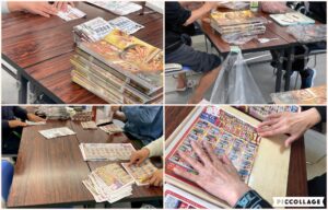 Fun2でも調理とチラシ折りが同時に進められていて、机の上には折り終えた紙が重ねられていました📄