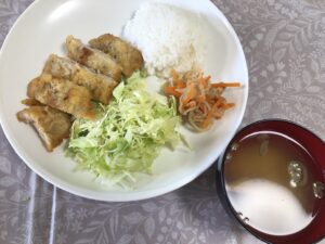 Fun2はトンカツ、切り干し大根の煮物、味噌汁。